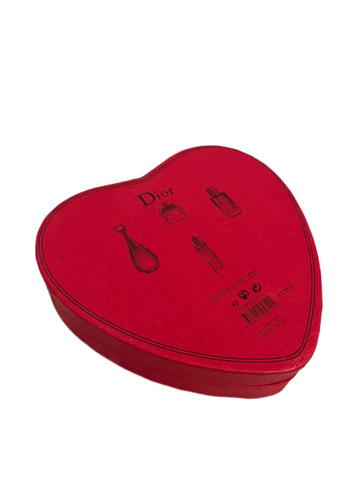 Ekskluziven Dior Heart komplet v romantični obliki srca je popolno darilo za vse ljubiteljice luksuznih parfumov. Ta prestižna kolekcija združuje štiri kultne ženske dišave hiše Dior v elegantnih mini stekleničkah, vsaka po 5ml.